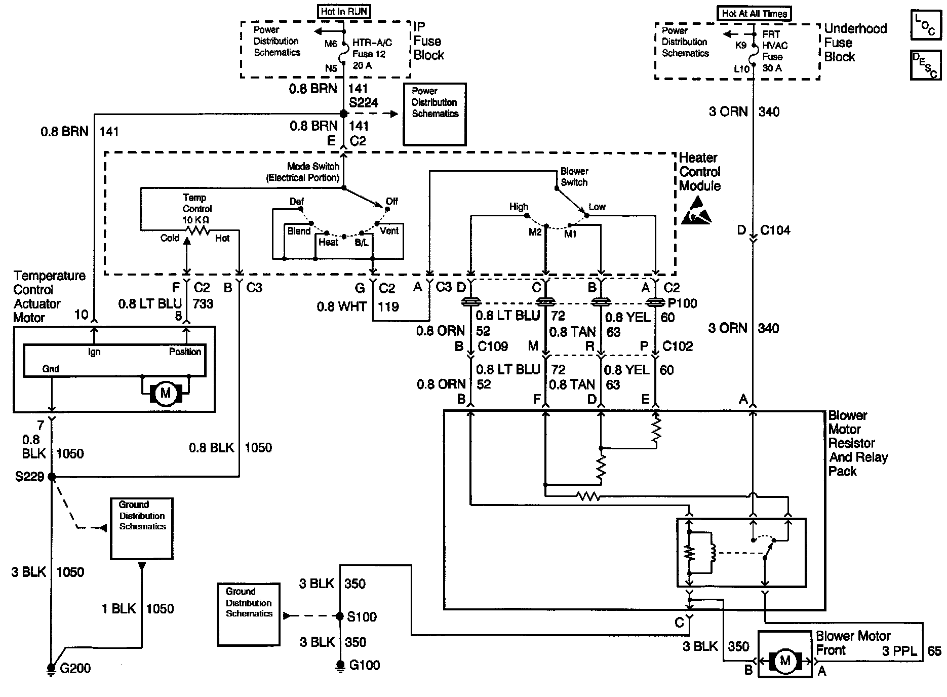 HVAC Blower Control Schematics (Non-A/C): Front Heater: