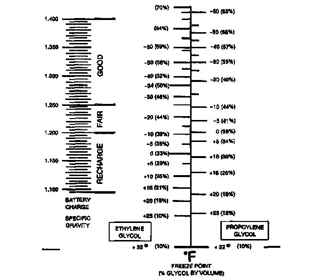 ^ The coolant protection reading is at the point where the dividing line between light and dark crosses the scale. Antifreeze protection is the scale on the right.