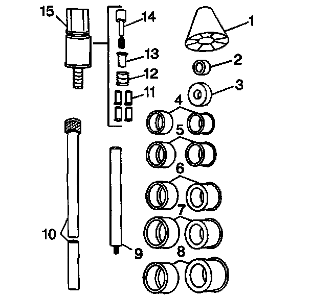 1. Assemble the J 33049 handle (10), the expanding driver (4-8), the washer (2 or 3), and the expander assembly (15).