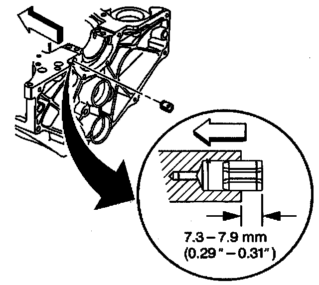 1.1. Install the oil filter bypass valve into the oil gallery bore until slightly below flush with the surface of the engine block.