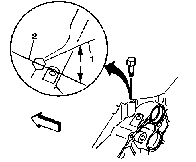 20. Rotate the engine oil pressure sensor fitting clockwise to the proper position (1), 50 degrees from the centerline (2).