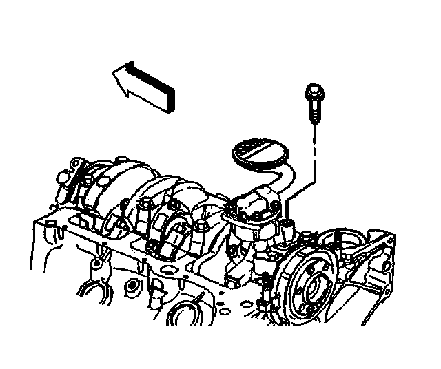 4. Install the oil pump bolt attaching the oil pump to the rear crankshaft bearing cap.