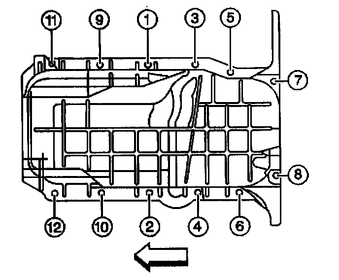 8. Tighten the oil pan bolts and nuts in sequence (1-12).