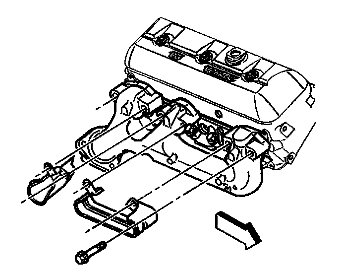 4. If reusing the fasteners, apply threadlock GM P/N 12345493 or equivalent to the threads of the exhaust manifold bolts.