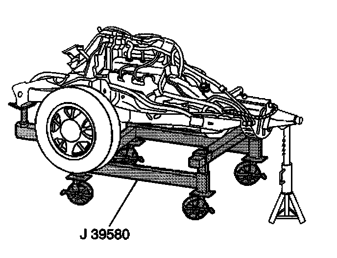 35. Lower the vehicle onto the engine/frame assembly and the J 39580.