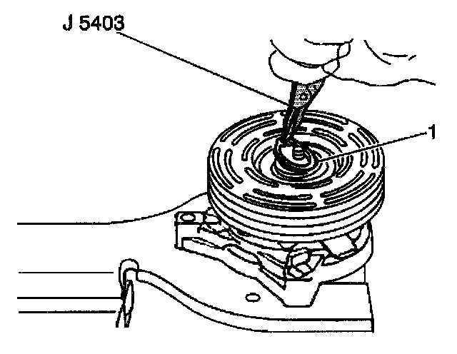 9. Remove the seal (1) from the compressor using a rotary-pulling motion. Discard the seal.