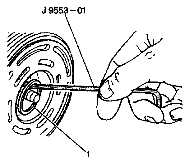 10. Remove and discard the seal seat O-ring (1) from the compressor neck using the J 9553-01.