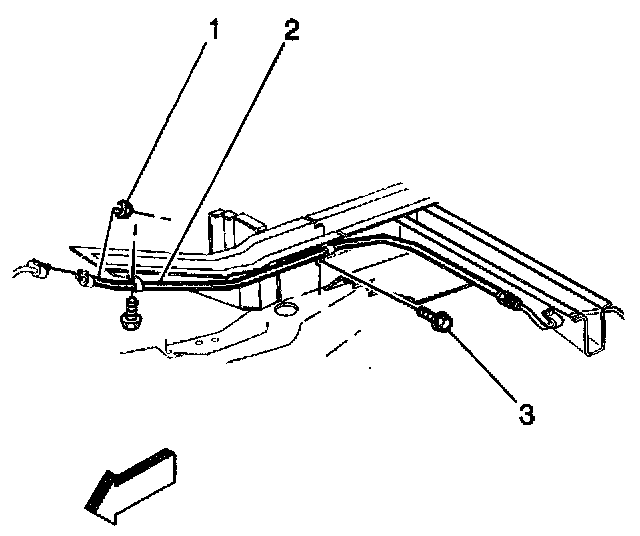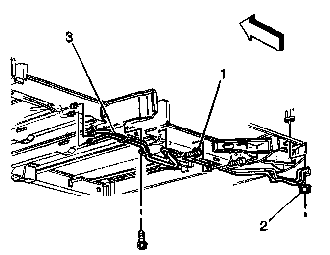 8. Remove the auxiliary evaporator side inlet tube (3) from the vehicle.