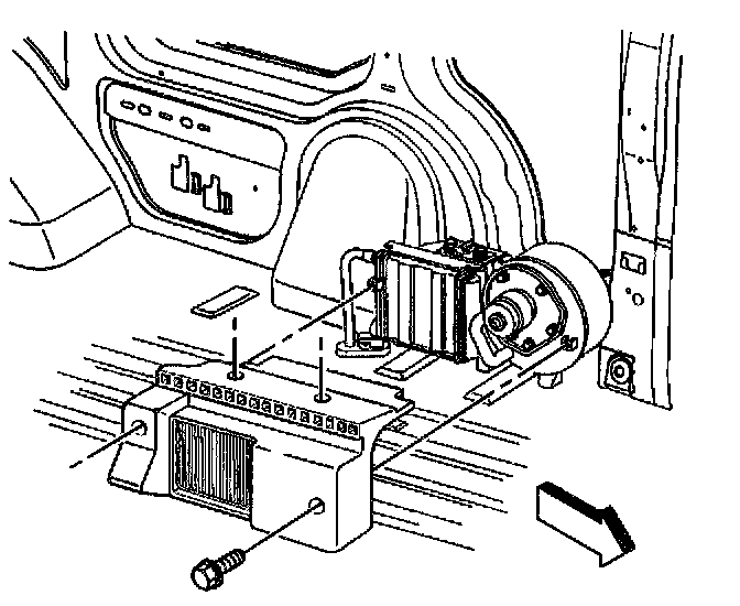 7. Remove the bolts retaining the auxiliary heater module to the floor.
