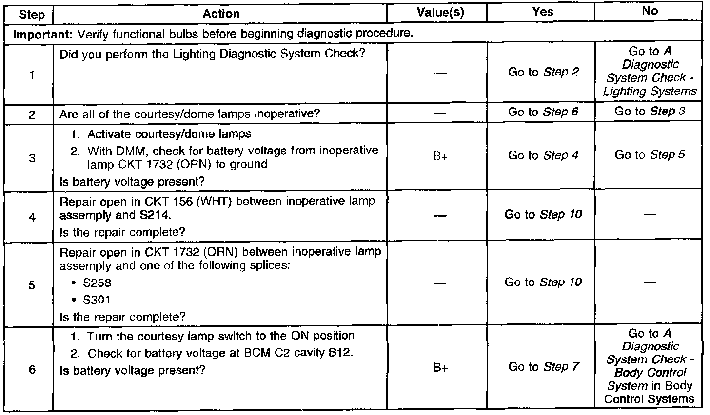 Courtesy Or Dome Lamps Inoperative