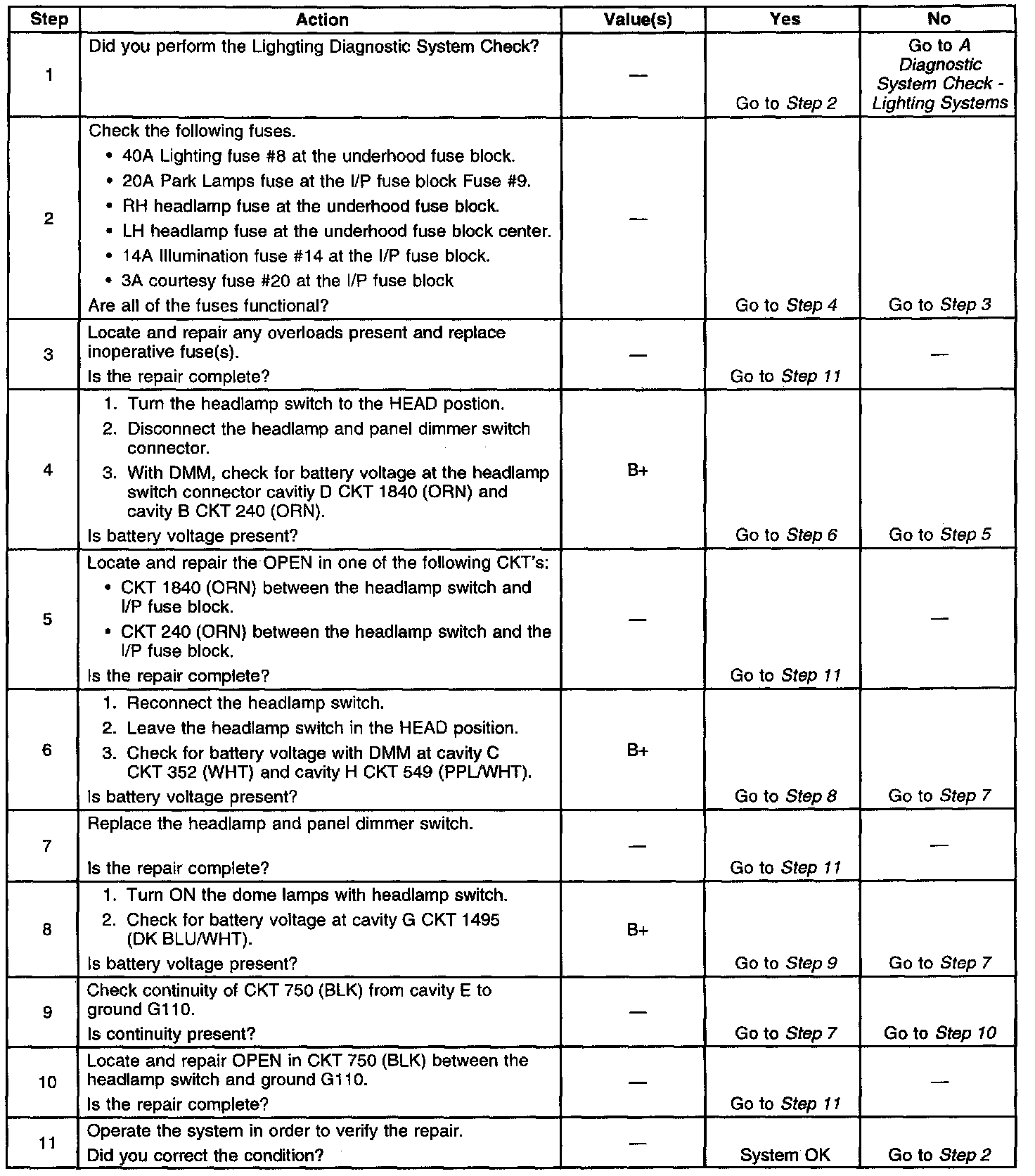 Headlamp and Panel Dimmer Switch Inoperative