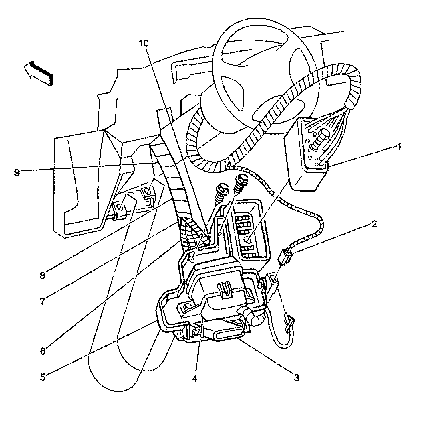 In the IP harness 20 cm (7.9 in) from the relay blocks breakout toward the DLC.