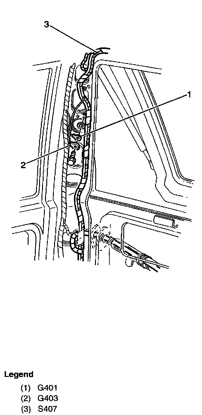 In the liftgate body harness 19.5 cm (7.7 in) from the G403 breakout toward the top of the vehicle