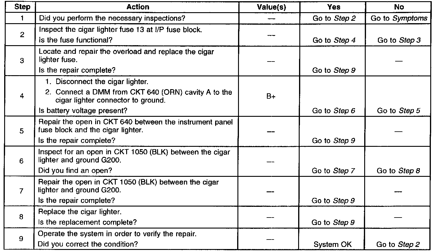 Cigar Lighter Inoperative