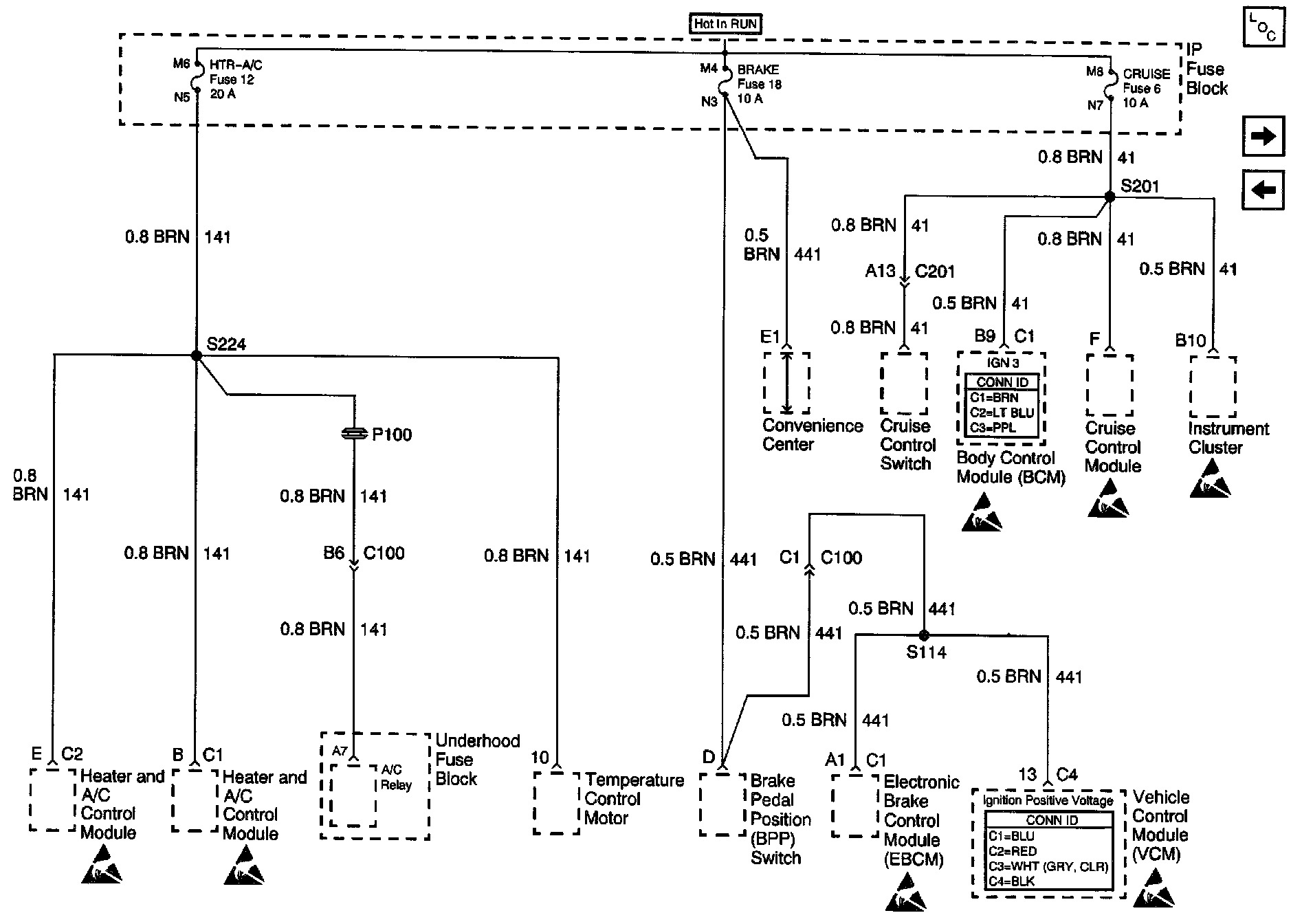 Power Distribution Schematics: HTR-A/C Fuse 12, BRAKE Fuse 18 and CRUISE Fuse 6: