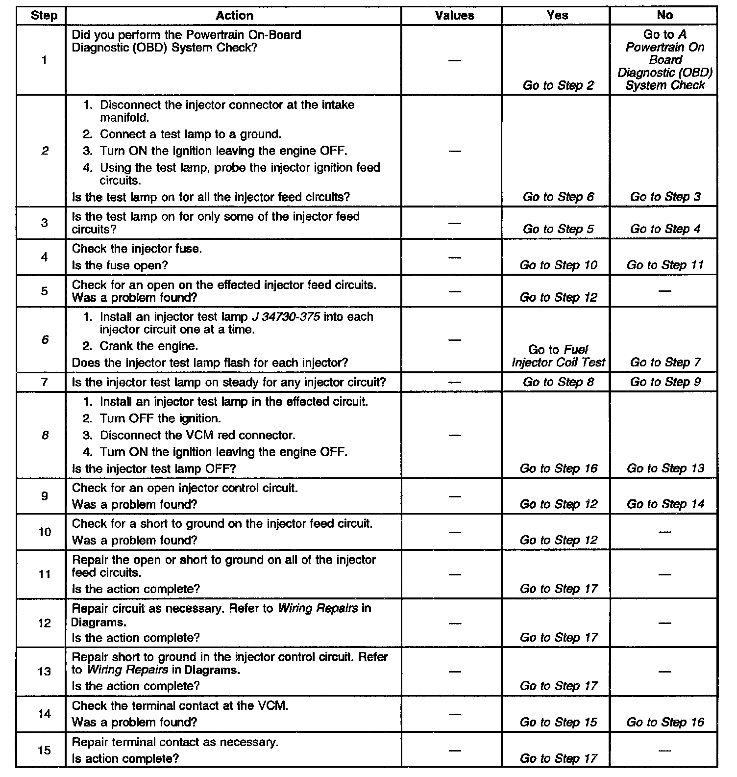 8. This step determines if there is an internal VCM short to ground for an injector control circuit.