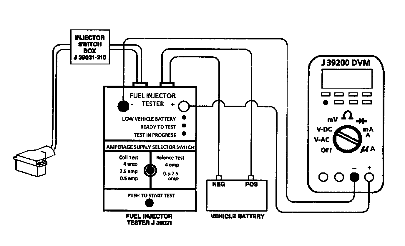 2. This step is used to set up the injector coil test. Also read the instructions included with the tools used for this test.