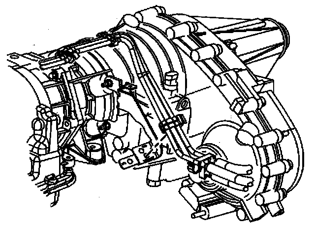 6. Remove the fuel/[1][2]EVAP pipes retainer mounting stud (6) from the transmission.