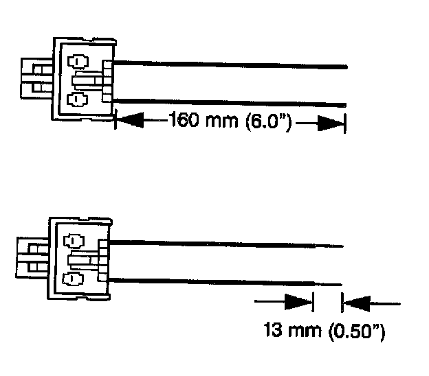 7. Strip 13 mm (0.5 in) of insulation from each of the connector wire leads.