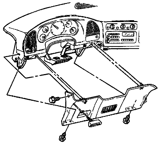 3. Install the screws that retain the knee bolster to the instrument panel.