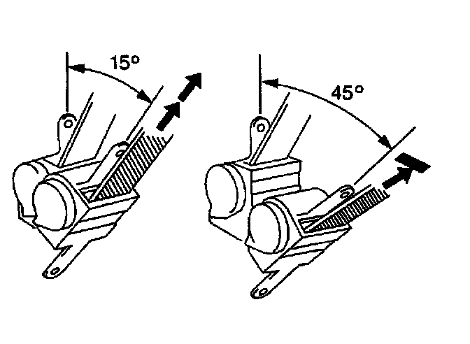 4.3. Ensure that the seat belt webbing can be pulled from the retractor at an inclination of 15 degrees or less and cannot be pulled from the retractor at an inclination of 45 degrees or more.