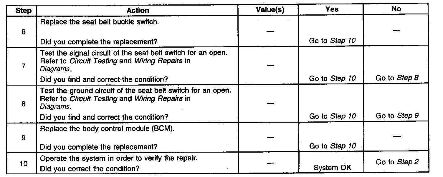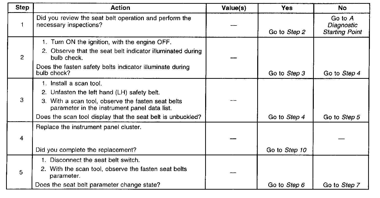 Fasten Safety Belt Indicator/Chime Inoperative (Part 2 Of 2):