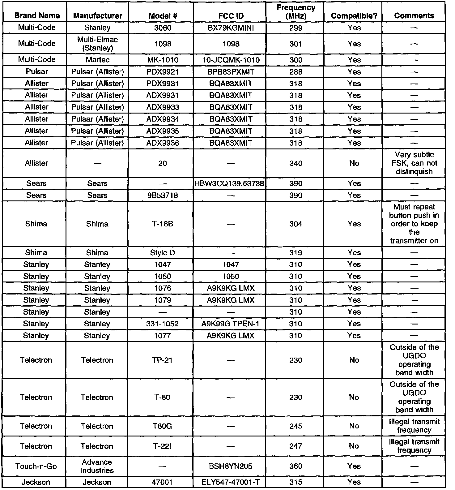 Garage Door Opener Transmitter