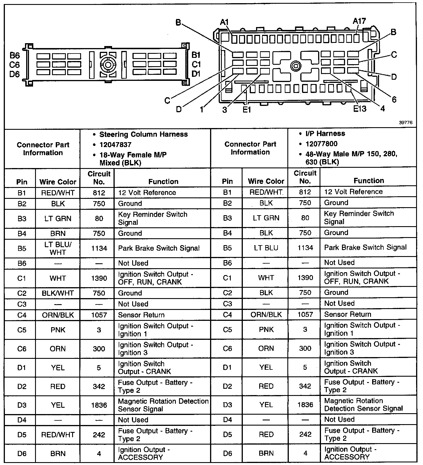 C201 (Steering Column to I/P) (Part 2 of 3):