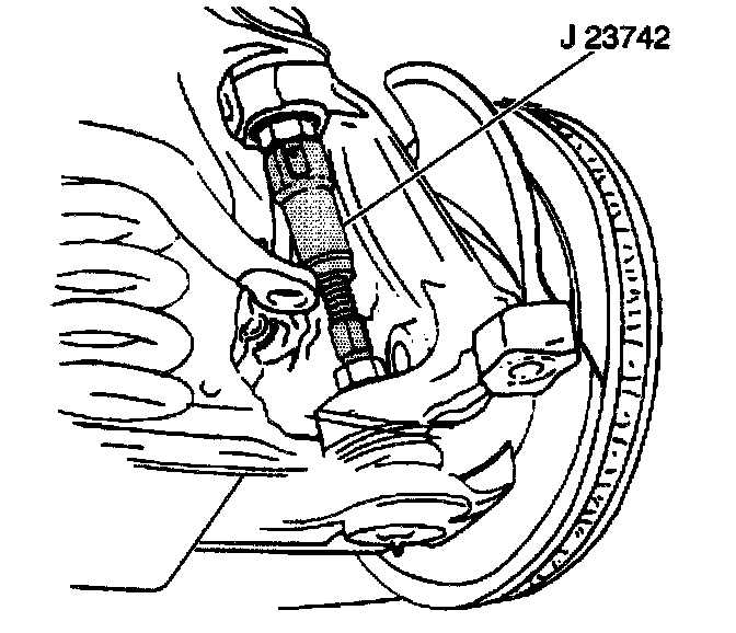 10.1. Use the J 23742 in order to break the lower ball joint free from the steering knuckle.