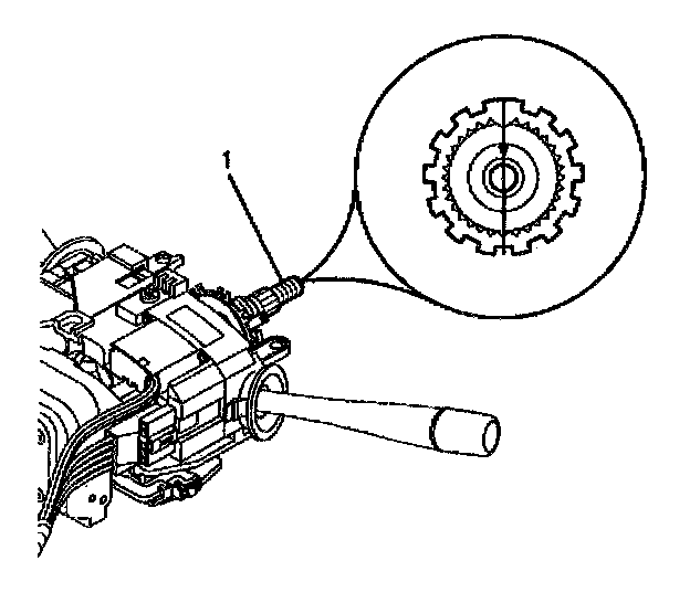 - The block tooth (1) of the steering shaft assembly is in the 12 o'clock position.