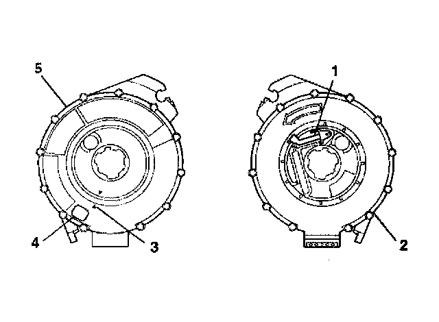 5. For no centering window on the front side (2) of the SIR coil assembly and no spring service lock on the back side (1), perform the following steps: