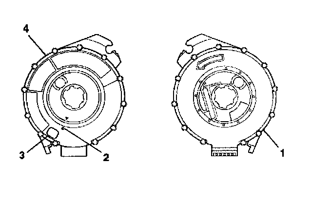 3. If the front (4) of the SIR coil has a centering window (3) and no spring service lock on the back side (1), perform the following steps: