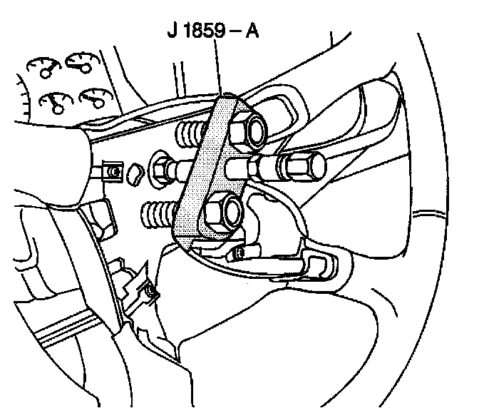 Notice: When removing the steering wheel, use only the specified steering wheel puller. Do not hammer on the end of the steering column shaft. Hammering could loosen the plastic injections which maintain the steering column rigidity.