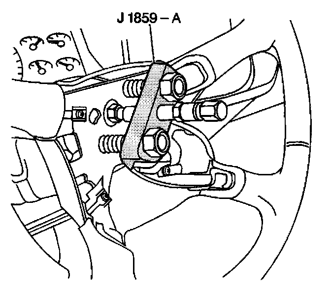 Notice: When removing the steering wheel, use only the specified steering wheel puller. Do not hammer on the end of the steering column shaft. Hammering could loosen the plastic injections which maintain the steering column rigidity.