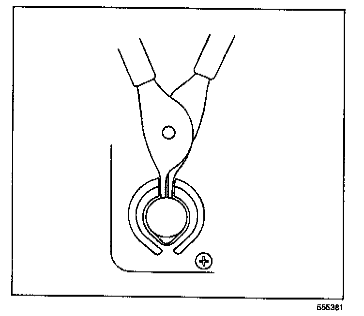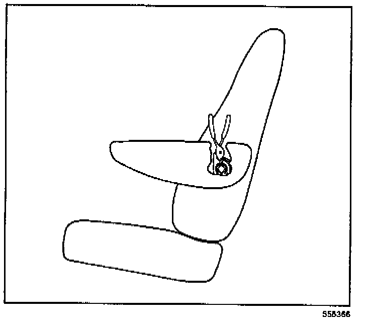 2. Place a pair of snap-ring pliers between the seat and the armrest. Make sure that the snap-ring pliers go between the arms of the snap plate.
