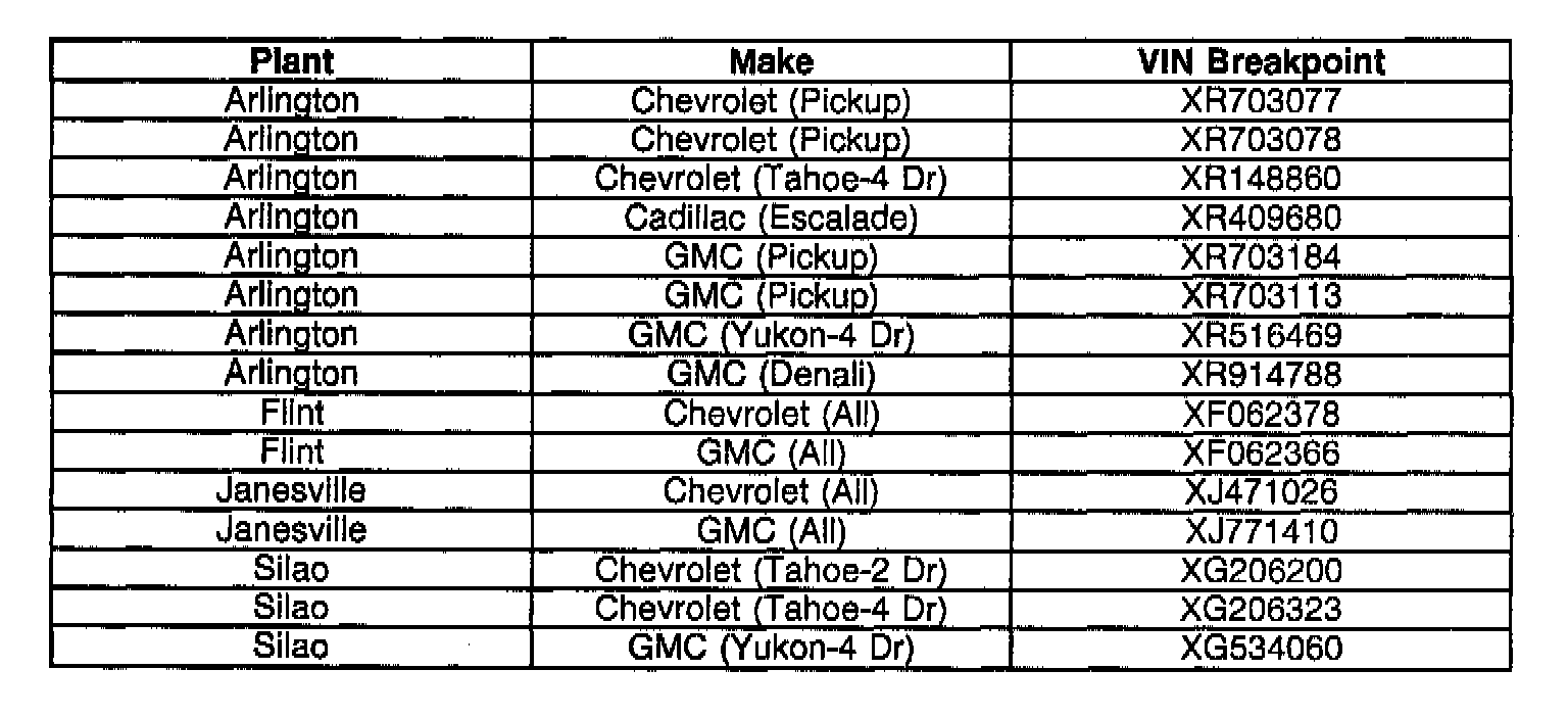 Built after the VIN Breakpoints (C/K) listed.