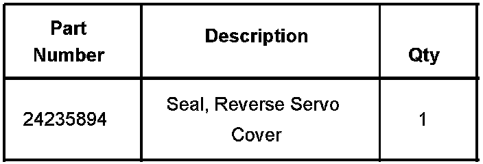 2. If the source of the transmission fluid leak is the reverse servo cover, replace the reverse servo cover seal with P/N 24235894. Refer to Reverse Servo Replacement in the appropriate Service Manual.