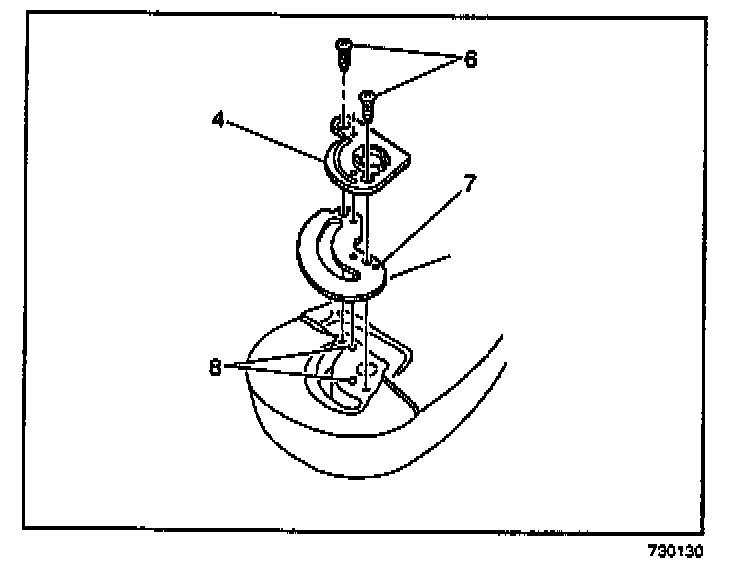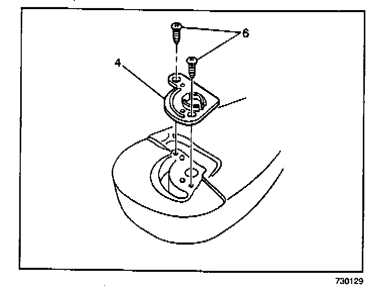 4. Remove the two torque washer screws (6) and discard both the screws and the existing torque washer.