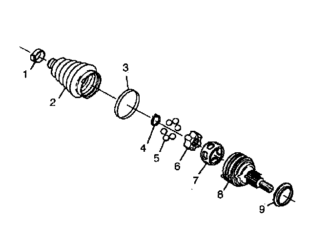 1. Inspect all of the parts for unusual wear, cracks, or other damage. Replace the CV joint assembly if necessary.