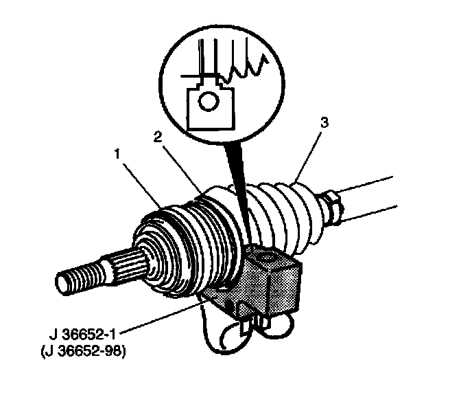 24. Install the top half of J 36652 onto the lower half of J 36652, over the CV joint (1) and the CV joint boot (3).