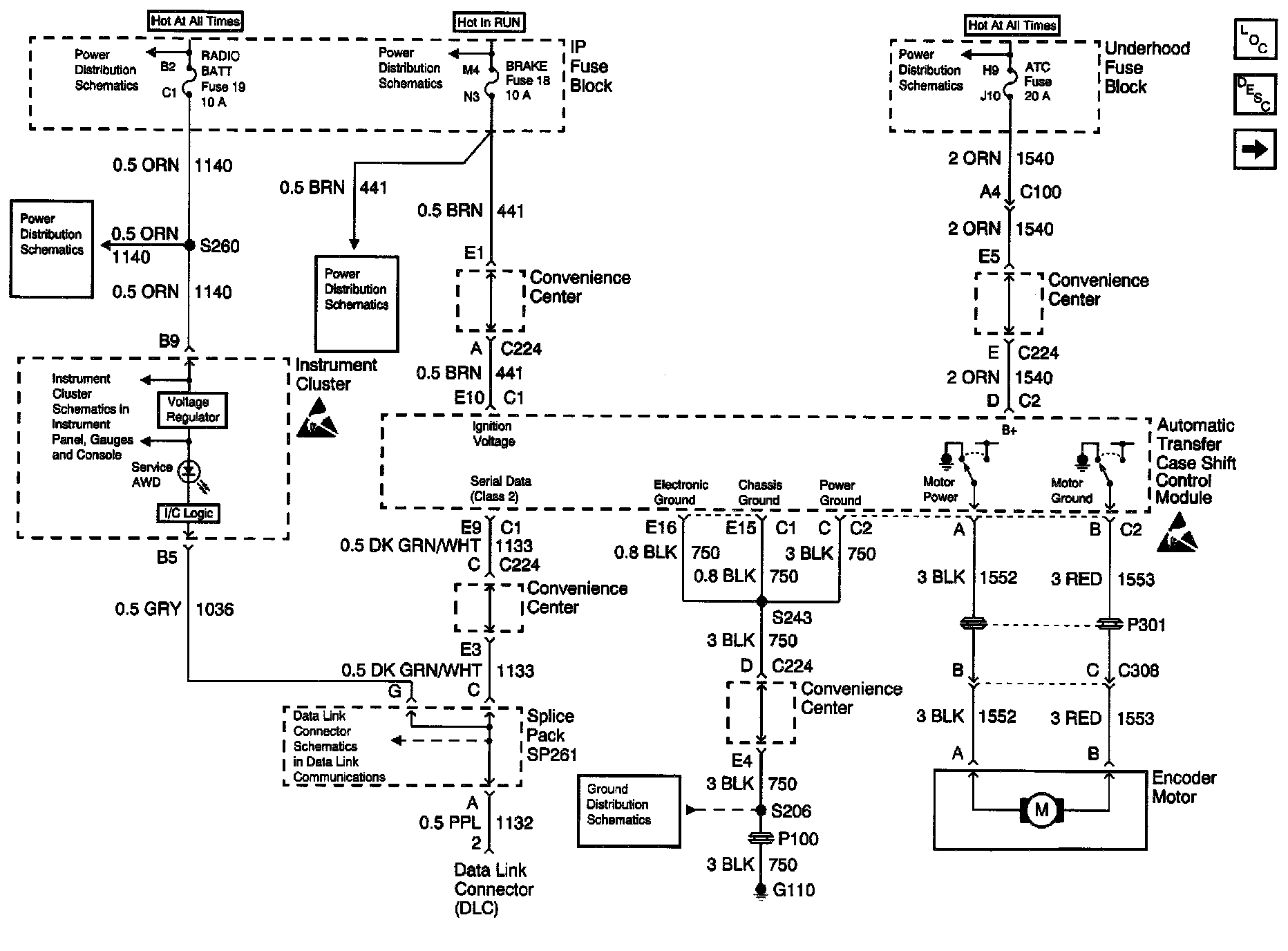 Transfer Case Control Schematics: Power, Ground, Motor Controls And Data Link: