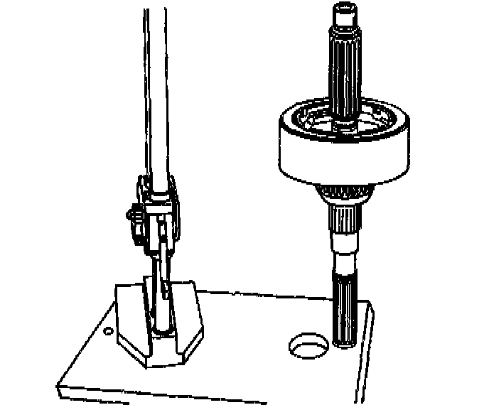 1. With the clutch drum full and on the main shaft, position the rear section of the main shaft through the hole of a flat fixture or surface.