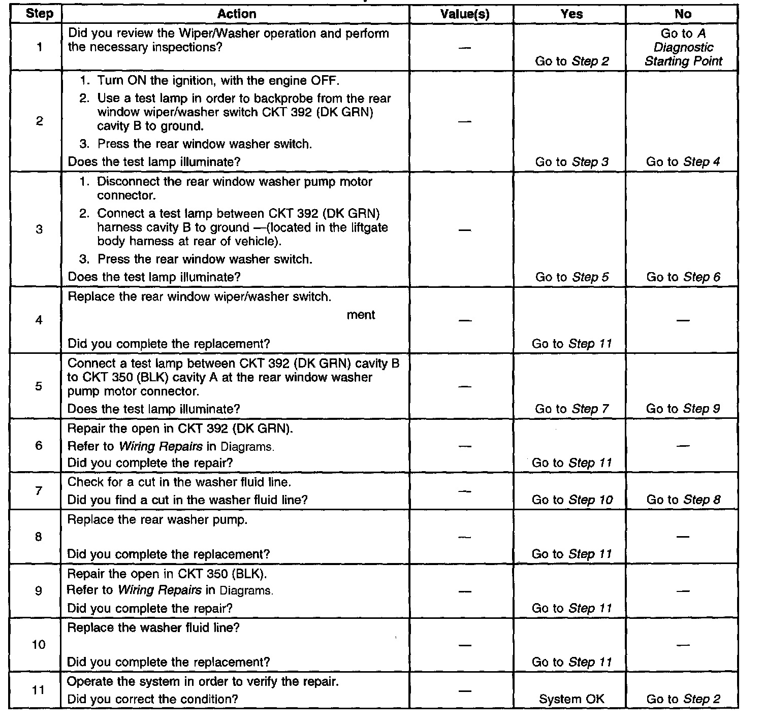 Washer Inoperative - Rear