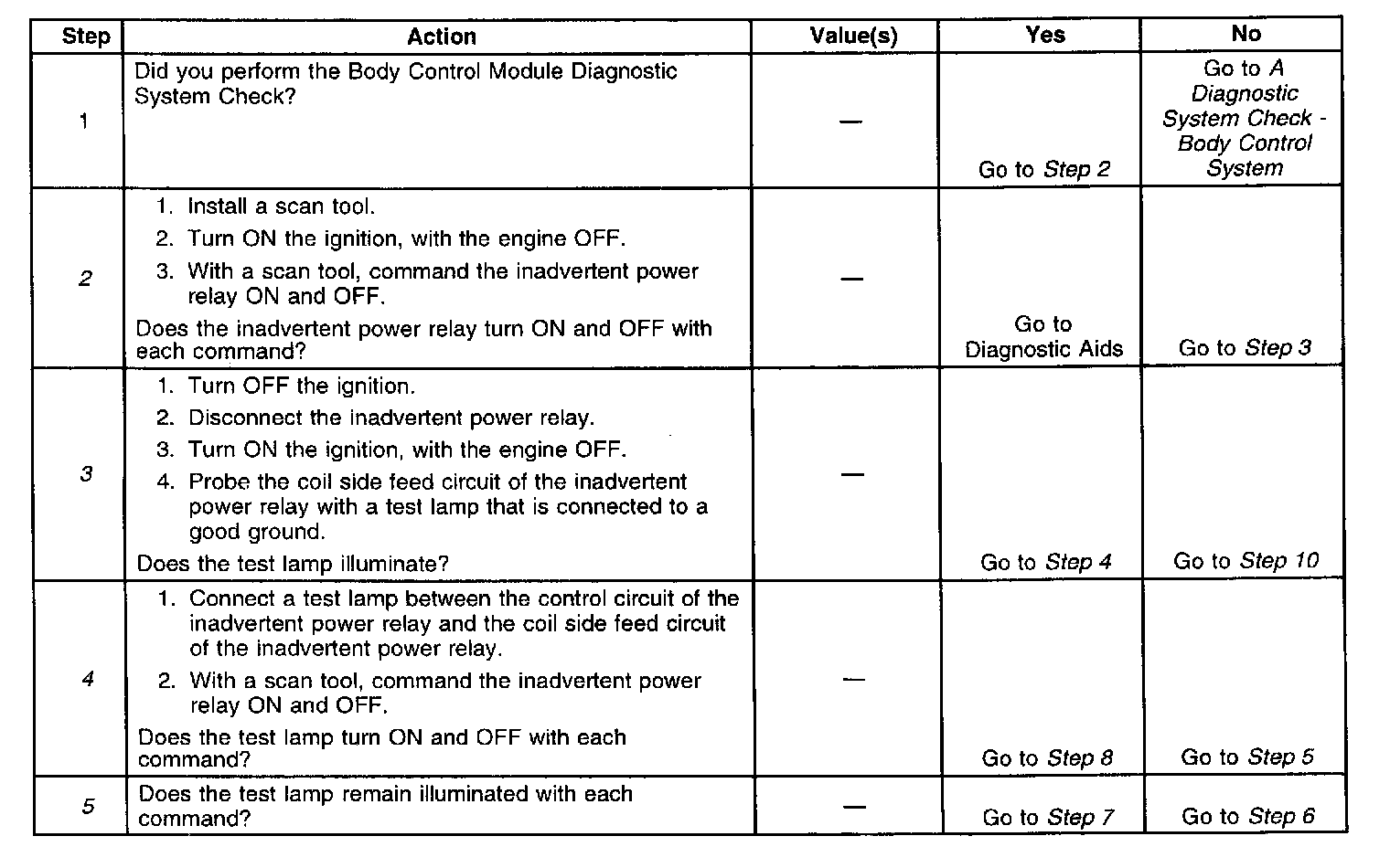 3. Tests for voltage at the coil side of the inadvertent power relay. The CTSY fuse supplies power to the coil side of the inadvertent power relay.