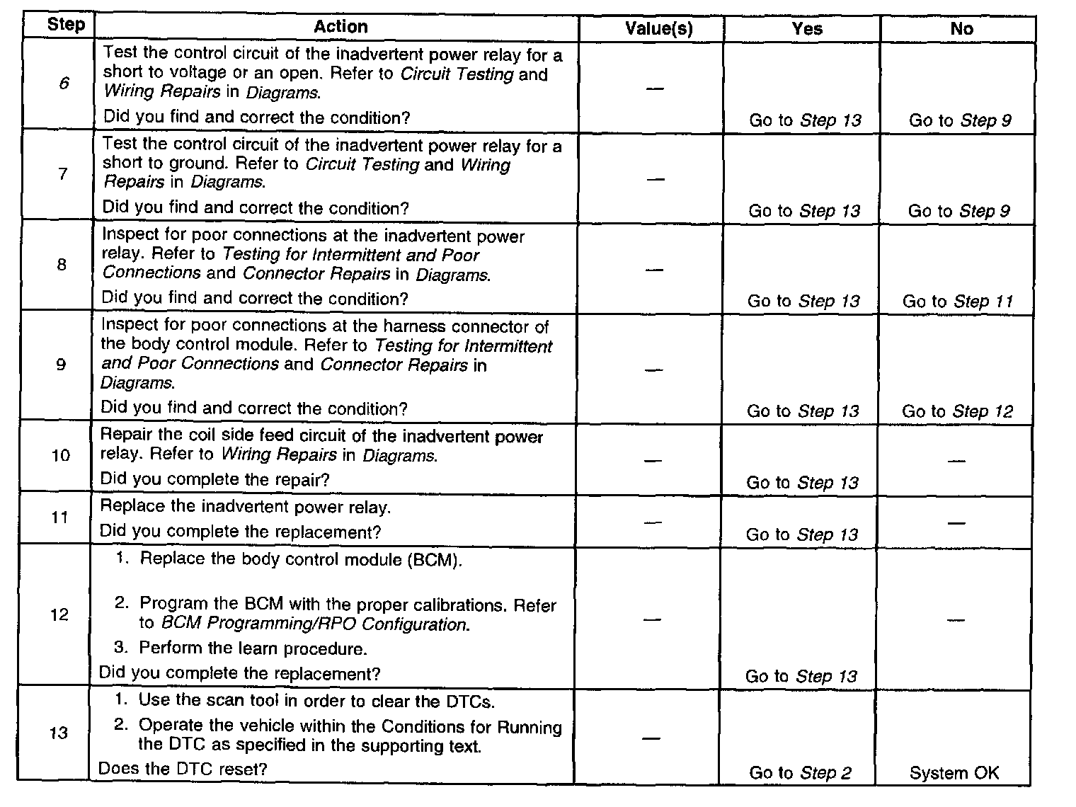 The number(s) below refer to the step number(s) on the diagnostic table.