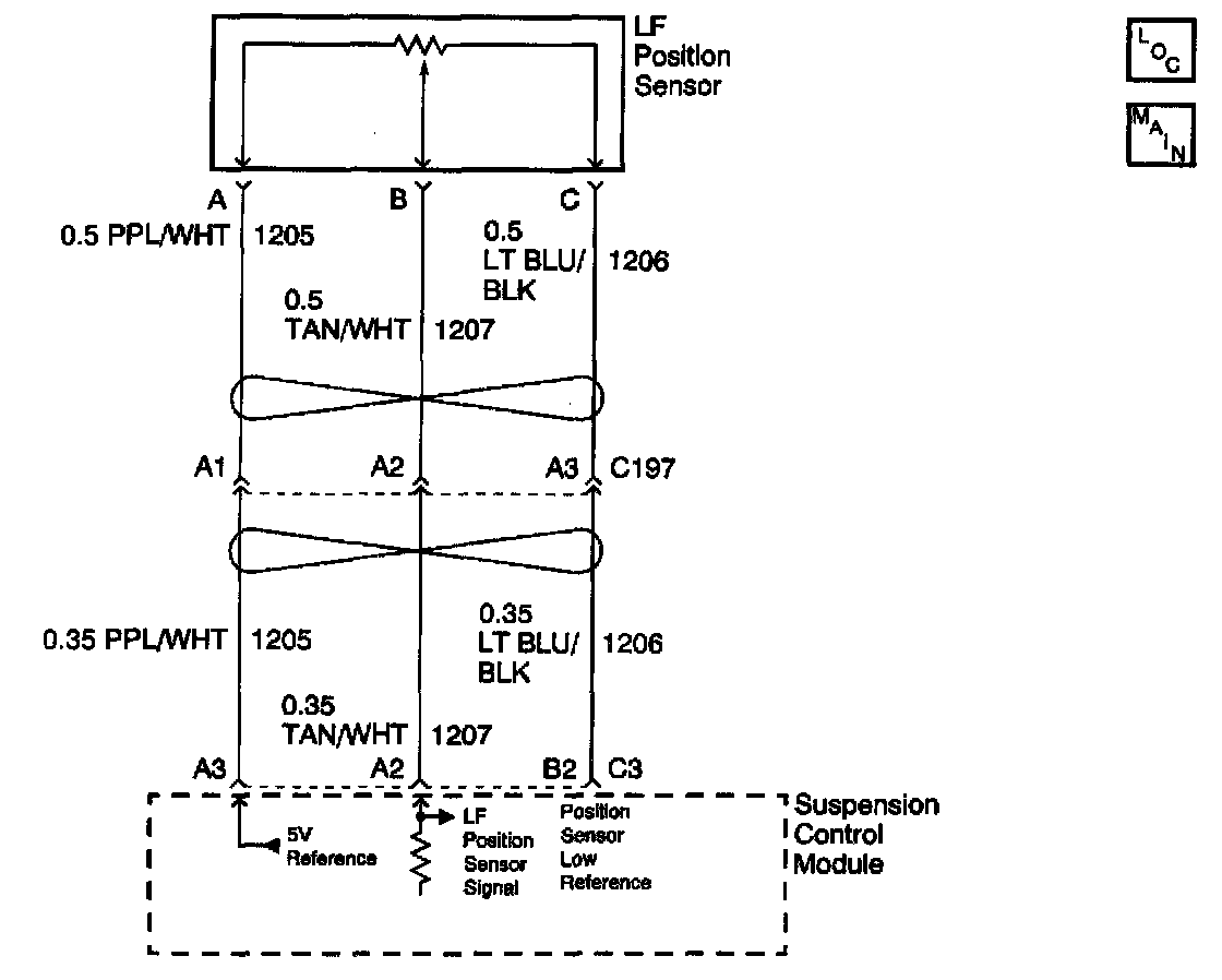 The position sensor provides an analog signal voltage between 0.5 and 4.5 volts to the suspension control module. This signal voltage represents the wheel's position relative to the body. The suspension control module provides a 5.0 volt reference and a low reference to the sensor. Conditions for Running the DTC Under normal driving conditions. Vehicle speed greater than 0 kph (0 mph).