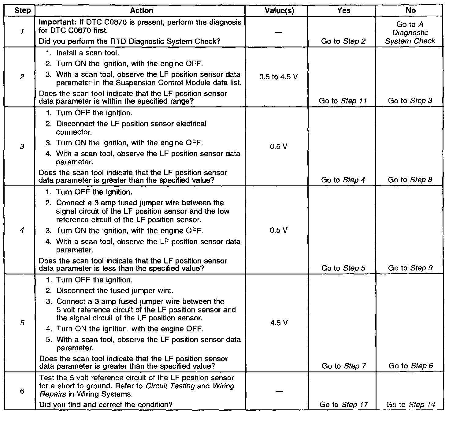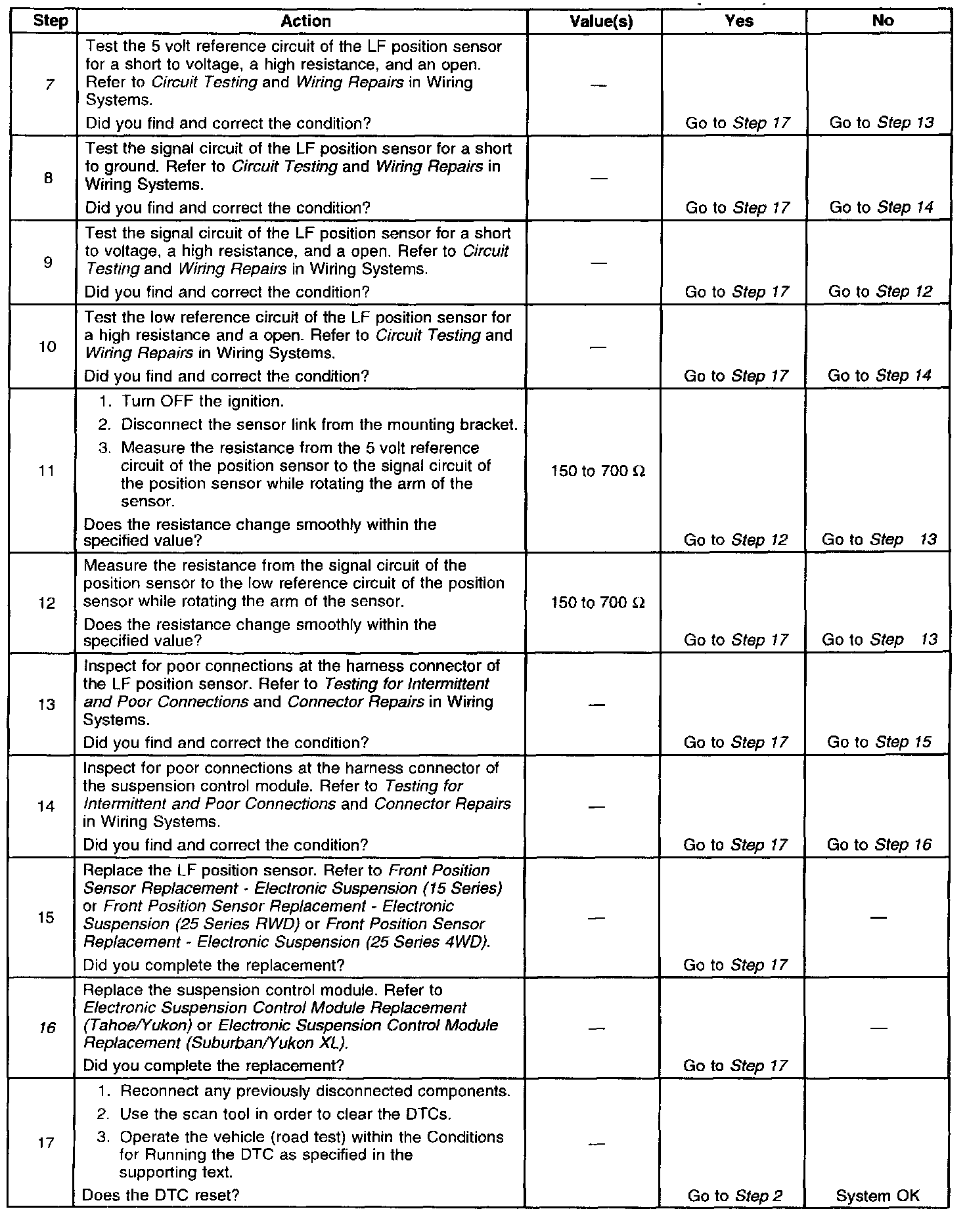 The number(s) below refer to the step number(s) on the diagnostic table.
