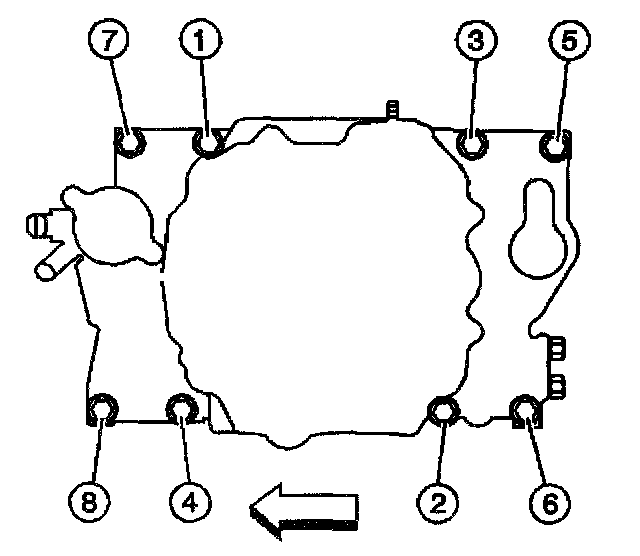 10.1. Tighten the bolts on the first pass in sequence (1-8) to 3 Nm (27 inch lbs.).