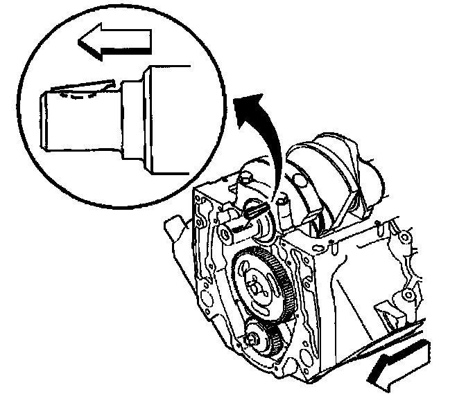 Important: Do not use a hammer to install the camshaft sprocket onto the camshaft. To do so may dislodge the expansion cup plug (camshaft rear bearing hole).