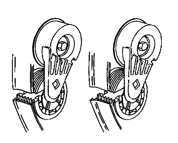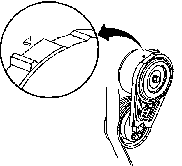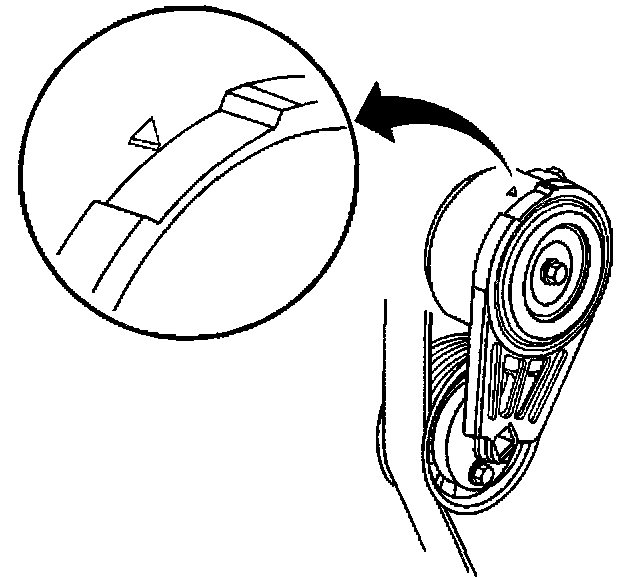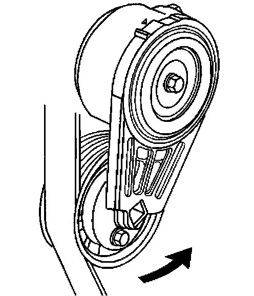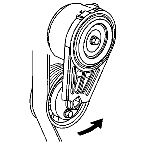 Removal Procedure1. Install a 3/8 inch drive wrench on the drive belt tensioner arm and rotate the arm counterclockwise.